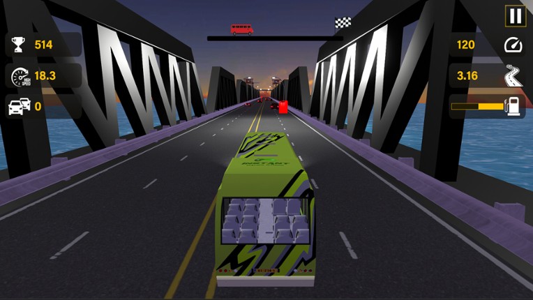 1 Highway Bus RushRace, dodge, and dominate the highway! Get behind the wheel of a high-speed highway bus and experience the thrill of endless racing in Highway Bus Rush. Complete daring missions, collect fuel, overtake traffic, and push your limits in multiple game modes and dynamic environments. Key Features: Near‑Miss King – Skim past cars and rack up style points. Fuel Grab – Collect fuel ta…