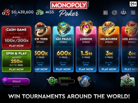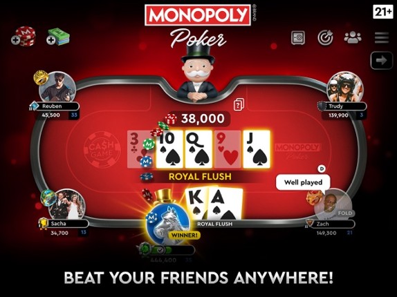 4 Go all-in on fun and fortune! Welcome to the official MONOPOLY Poker game, the ultimate Texas Hold’em poker experience with a board game twist! Step into a world where online poker meets property-building, and every poker hand brings you closer to building your own empire. Whether you're a seasoned poker tycoon or a newcomer eager to pass GO!, MONOPOLY Poker is your destination for fast-paced c…