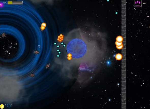 9 Solitarius is a 2D top-down wave shooter set in a sci-fi space environment.