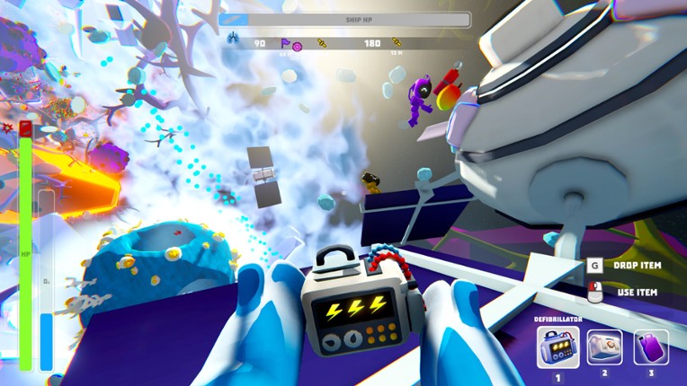 Space Out Together is a co-op space survival/adventure game where your crew crash-lands in the wrong sector of space. Refuel your ship, keep each other alive, and make it to the portal before everything falls apart. Together.. REFUEL & FLY Your ship runs on radioactive fuel! Haul them back, and load up the engine. One player pilots while everyone else makes sure there's something left to p… If you enjoyed this game, see our list of games similar to Space Out Together.