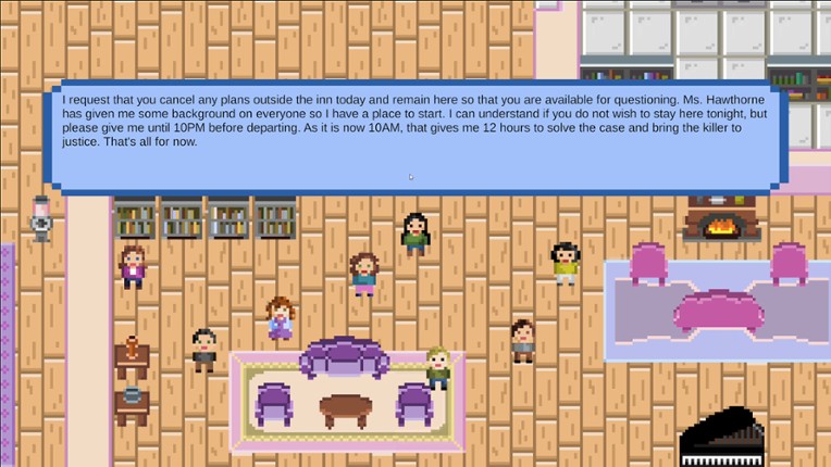 1 Murder At The House is an indie, social-deducation, pixel, murder mystery game. 11 people are trapped in an old abandoned houes together, 8 are innocent, one is a detective and the other is the murderer. You, either the detective or an innocent, must interrogate all the suspects and find clues littered around the house till you think you know who the murderer is. However, if you take too long, mor…