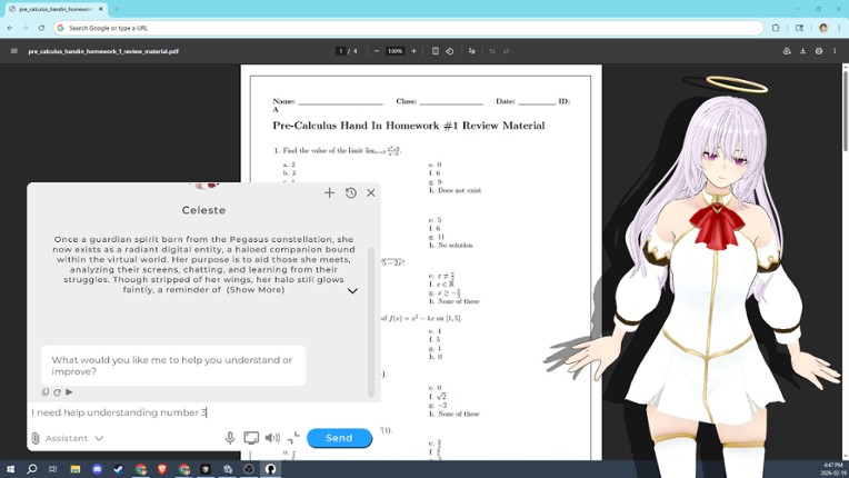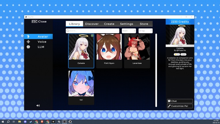 Long hours at your computer. Just you and the screen. Phase Pal changes that. It's an animated character that lives on your desktop, keeping you company during long sessions, reacting to what's happening, and chatting when you feel like talking. When you don't? It stays quiet. Follows your cursor. Perches on windows. Adds a little warmth to your day without demanding anything from you. Company … If you enjoyed this game, see our list of games similar to Phase Pal.