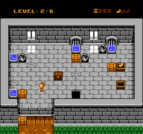 "Soko Banana" is a puzzle game developed for the Nintendo Entertainment System (NES), inspired by the classic Sokoban concept. Players guide the young monkey, Skid, through banana warehouses across five distinct islands, each introducing unique mechanics such as pits, breakable blocks, and teleporters. The objective is to maneuver banana crates to designated exits while collecting bananas to unloc… If you enjoyed this game, see our list of games similar to Soko Banana.
