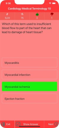 This app will help you test and master your knowledge of Cardiology Medical Terminology. This handy application is designed with precision and understanding to give you a boost of brain power and at the same time a refresher. This Terminology App is for professionals, students and whoever is interested in increasing knowledge or refreshing what you know in this field. FEATURES - Internet connec… If you enjoyed this game, see our list of games similar to Cardiology Medical Terms Quiz.