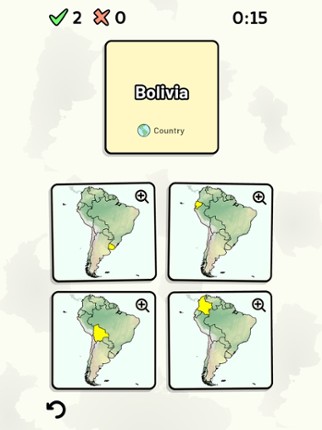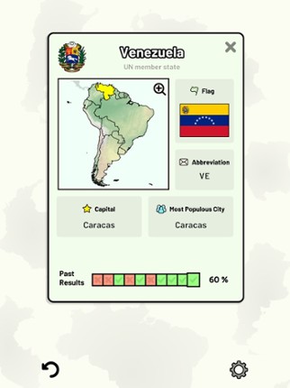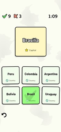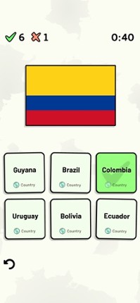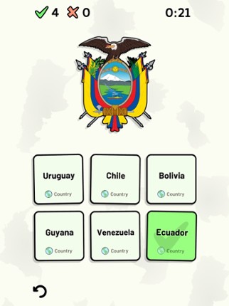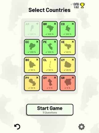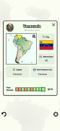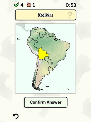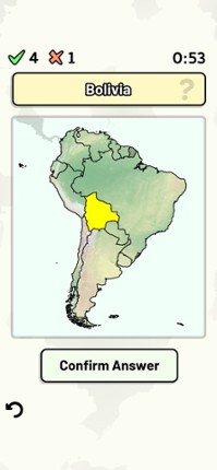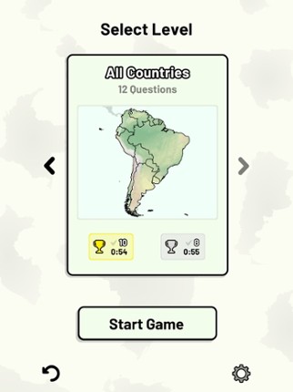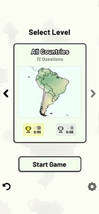 This app includes all sovereign states on the South American continent that are in the United Nations. Quizzes cover 6 topics about the South American countries: - Locations on a map - Capital cities - Most populous cities - Flags - Coat of arms - Country abbreviations (ISO 3166-2) Customizable quizzes allow you to choose which South American countries to test, as well as the topic. Past result… If you enjoyed this game, see our list of games similar to South American Countries Quiz.