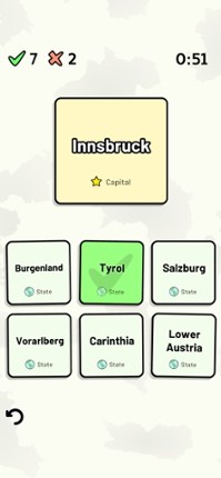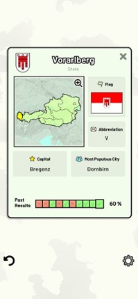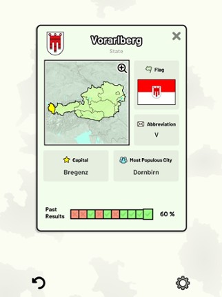 Quizzes cover 6 topics about the Austrian states: - Locations on a map - Capital cities - Most populous cities - Flags - Coat of Arms - State abbreviations Customizable quizzes allow you to choose which states to test, as well as the topic. Past results for each state are displayed to highlight your progress at each topic. All content can be accessed for free. An optional in-app purchase is ava… If you enjoyed this game, see our list of games similar to States of Austria Quiz.