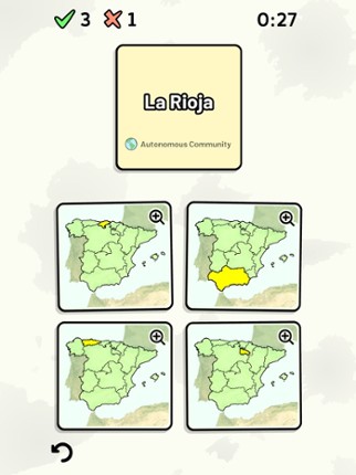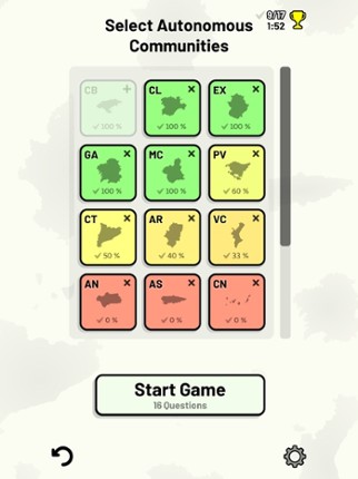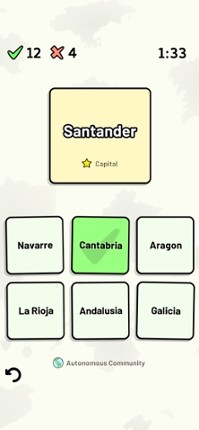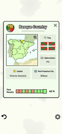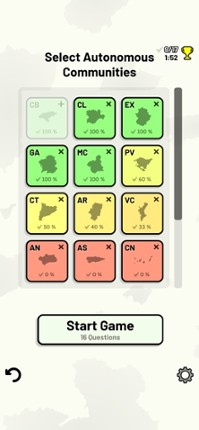 Quizzes cover 6 topics about the Spanish autonomous communities: - Locations on a map - Capital cities - Most populous cities - Flags - Coat of Arms - Abbreviations (ISO 3166-2) Customizable quizzes allow you to choose which autonomous communities to test, as well as the topic. Past results for each autonomous community are displayed to highlight your progress at each topic. All content can be … If you enjoyed this game, see our list of games similar to Spanish Autonomous Communities.
