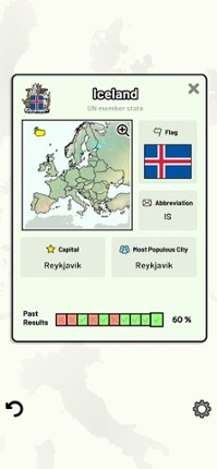 This app includes the sovereign states on the European continent that are part of the United Nations. Additionally, it includes two transcontinental countries, Russia and Turkey, which are located in both Europe and Asia. Quizzes cover 6 topics about the European countries: - Locations on a map - Capital cities - Most populous cities - Flags - Coat of arms - Country abbreviations (ISO 3166-2) C… If you enjoyed this game, see our list of games similar to Countries of Europe Quiz.