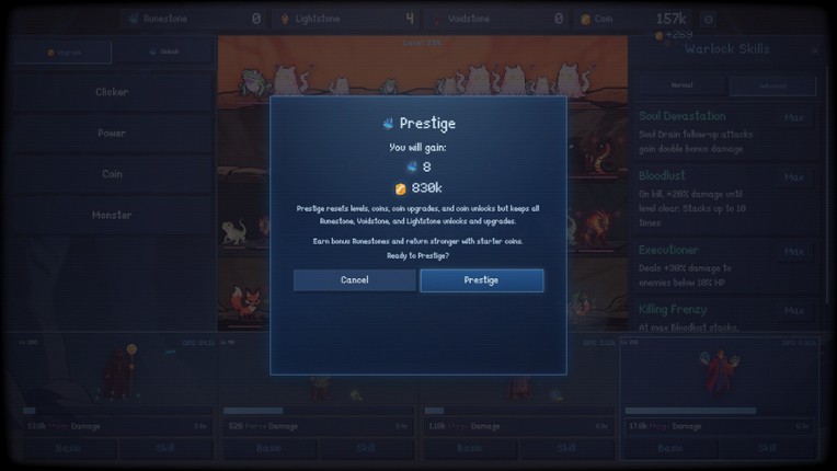 Assemble your roster, scale your economy, unlock advanced systems, and push deeper into the dungeon every run. The core loop is easy to start and hard to quit: optimize damage, boost speed, trigger powerful effects, and keep climbing. Core Gameplay Idle progression with active decisions: Your team fights automatically, but your upgrade path, unlock timing, and build priorities decide the out… If you enjoyed this game, see our list of games similar to Infinite Dungeon: Idle Adventure.