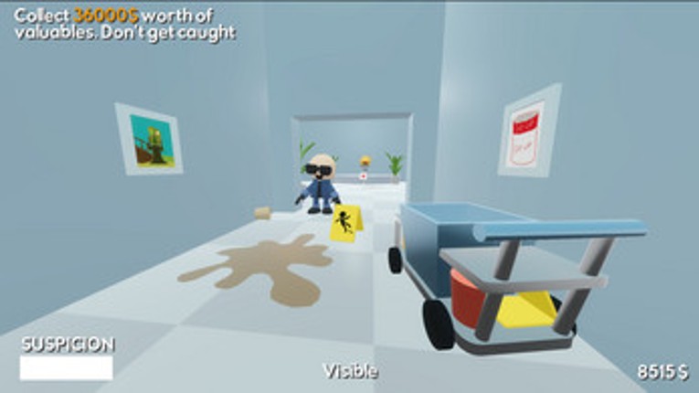 1 Notice: High refresh rate monitors might cause physics breaking bugs in the game jam version (at least 165Hz). A patch is ready and will be published after the jam Get ready for a slick heist! You work as a janitor in an art gallery, but you need money fast. Use your cunning wits, tools and slippery surfaces to perform the perfect heist in this first person action game. Controls MovingW…