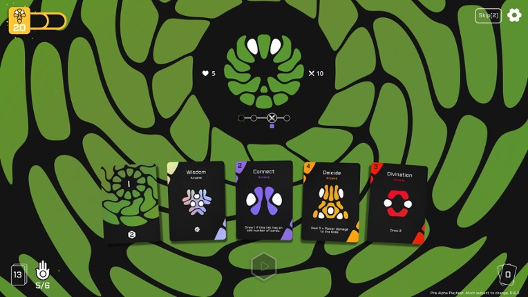 Azoth is a strategic deckbuilding card game where you'll harness the powers of Blood, Sol, and Anima to build synergistic card combinations through a unique linking system that rewards careful planning and strategic play. Take down increasingly challenging pattern cards and bosses in each act on your quest to reach AZOTH. Cards must be played in strategic links - sequential numbers, group… If you enjoyed this game, see our list of games similar to Azoth.