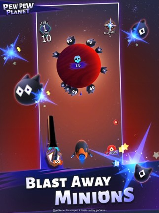 Calling all brave space captains! Fire up your Guardian cannons and blast away those pesky Minions! Use your deadly accuracy to shoot the Minions circling around the planet! Be careful not to hit the planet and bombs! The higher your level, the more Minions to eliminate! Get a high score to receive more Allstars! Discover over 30 unique Guardians! Recruit new Guardians by using Allstars! Hit spe… If you enjoyed this game, see our list of games similar to Pew Pew Planet.