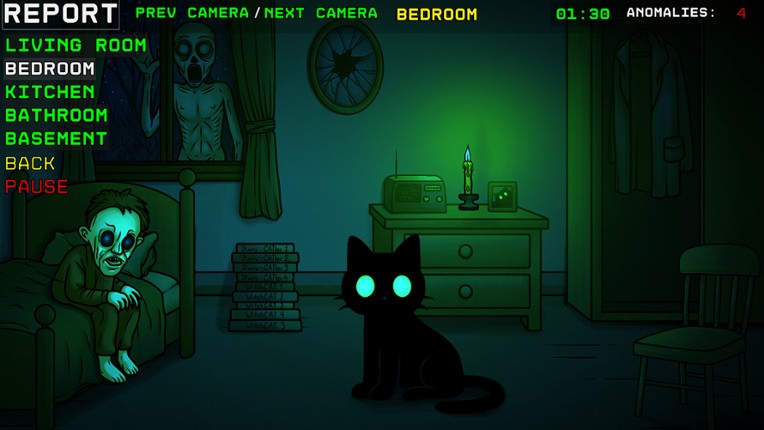 Watch. Notice. Report.In Observer The Cat you need to watch rooms through surveillance cameras and report anomalies before it's too late. Try to survive until 06:00 if you canIf you think you saw something… you probably did. The question is whether you’ll report it in time. And don’t trust the cat. How it works Keep an eye on the rooms with surveillance cameras. Notice any changes and anomal… If you enjoyed this game, see our list of games similar to Observer The Cat.