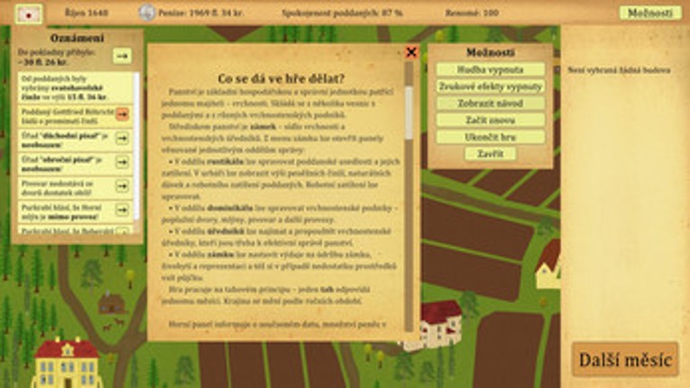 Náplní hry je správa panství v pobělohorské době. Cílem je, aby hra byla co nejrealističtější a možnosti hráče skutečně odpovídaly tomu, co majitel panství s pomocí svých úředníků mohl s panstvím a poddanými dělat, a aby ekonomický systém co nejvíce odpovídal tomu, jak ekonomika panství skutečně fungovala. Existuje totiž spousta budovatelských strategií s nádhernou grafikou, ale ekonomický systém … If you enjoyed this game, see our list of games similar to Panství.