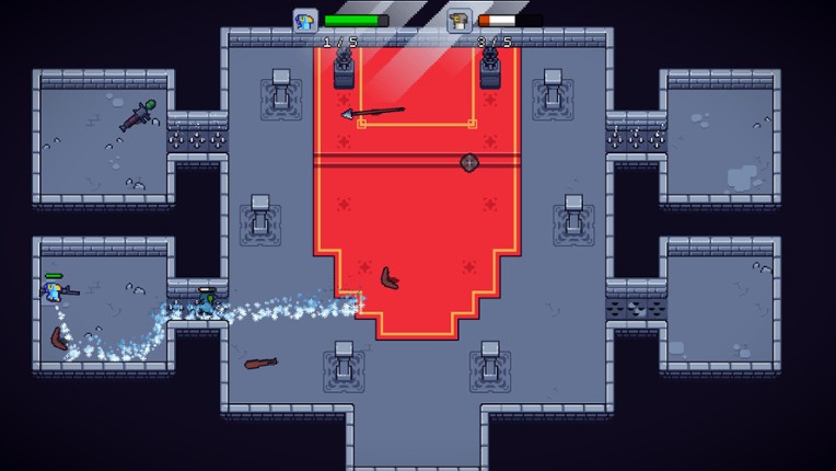 Last one Standing is a 2D couch fighting game, where each round brings new rules that change the weapons, the players or even the world itself ! Grab a sword and melee your neighbor to the death. Grab a baseball bat, and teach him why people usually avoid falling into the void. Or maybe you would prefer a more subtle approach ? Like forcing your enemies to run into lava or presenting them to … If you enjoyed this game, see our list of games similar to Last One Standing.