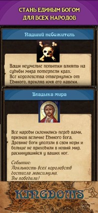 Вы пришли в этот мир, чтобы низвергнуть древние пантеоны и стать Единым богом для всех народов. Ваша задача: сделать лояльными все королевства. *** Управляйте событиями, с умом распределяя их между королевствами! *** Соревнуйтесь с другими игроками в накоплении очков Света и Тьмы! *** Узнайте более 600 неожиданных результатов ваших действий! Добро пожаловать в мир Четырёх Королевств! Информа… If you enjoyed this game, see our list of games similar to Kingdoms: Текстовая стратегия.