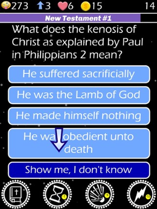 6 74%Game Brain Score74% User Score 30 reviewsEnjoy trivia questions provided by President of New Hope Christian College, Dr. Wayne Cordeiro. Bible Basics is one of several faith-based trivia quiz games from RD Games that “teaches” what you don’t know by showing you scripture from the Bible as you answer and learn. When you run out of free lives, you get more the next day to keep you progressing through. The game includes questions from 5 m…
