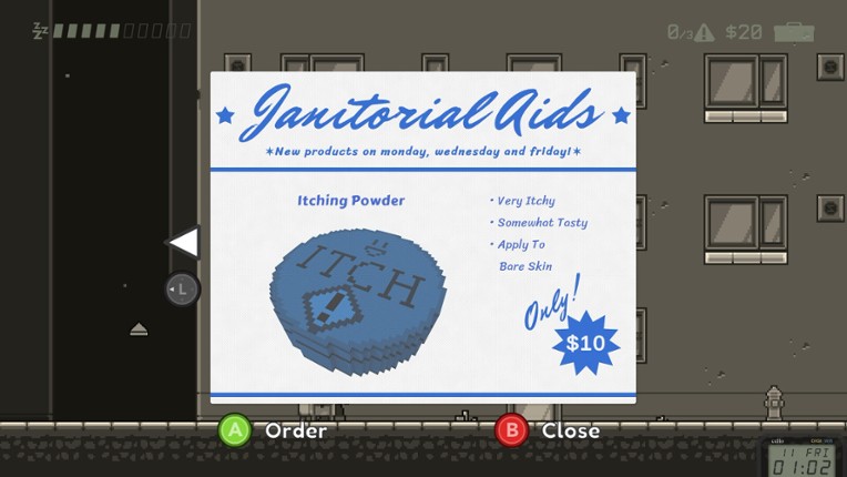 View Game3 Bad Janitor is a game, where your objective as an undercover janitor is to get tenants to move out of their apartments by discreetly annoying them, so the buildings can be torn down and get rebuilt into office complexes by your actual employer, CityGrind Corp. You will also have to perform basic janitorial duties to keep your job and cover. STORYYour big day is here! After ten years of slowly c…