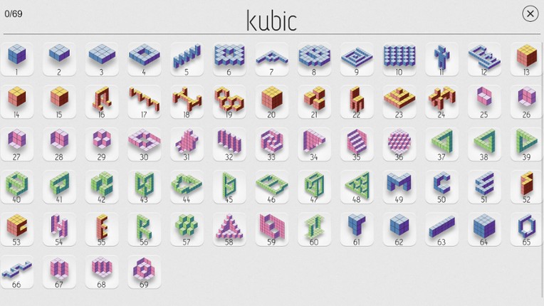 10 kubic is a unique optical illusion puzzle game based on M.C. Escher's art, impossible objects and other geometric designs. The object is to construct the goal configuration from a number of pieces. Presented in a simple, clean design and minimalistic art, kubic is a premium game with over 60 escher-esque puzzles. When you click on a piece, it pops to the front-most layer, and may overlap oth…