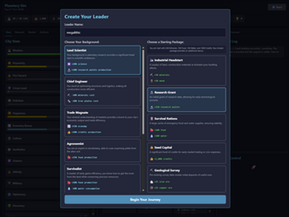 6 30%Game Brain Score30% User Score 5 reviewsa game I liked called dCity went down, so I made the sequel. features include: - tons of buildings, events, stats, tech, items, and character customization- research, discovery, military, economy, forecasting, and more- player leadership role through prompted events and governance systems- excessive non-linear open-ended decision making towards progression- ascension project newgame+ difficulty sc…