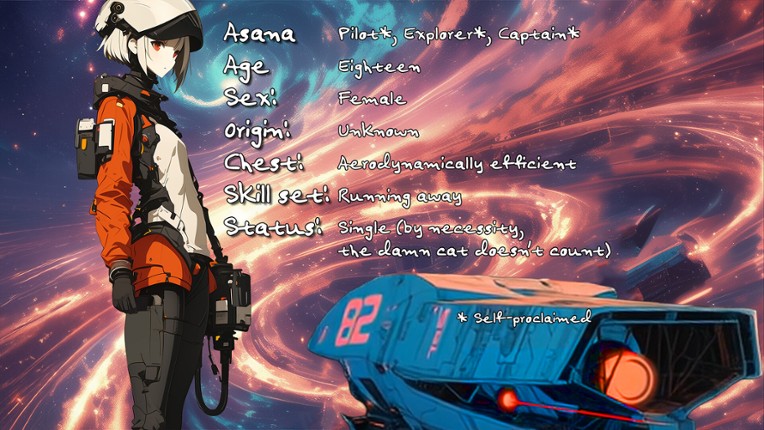 A visual novel where the world is hand-drawn, the cat is a live AI god, and the captain is dangerously oblivious to her own past... ASANA is a sci-fi dark comedy visual novel where your choices shape your character, your stats shape your options, and N.E.K.O. — the ship's godlike AI, currently in cat form, permanently in judgment mode — watches everything and is not impressed. You are Captai… If you enjoyed this game, see our list of games similar to Asana.