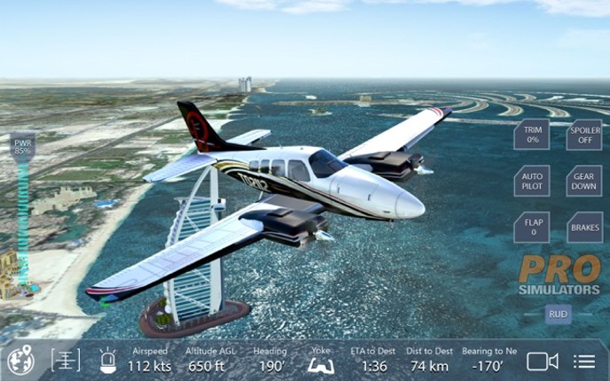 Become a pro pilot in this amazing flight simulator! Pro Flight Simulator Dubai is the best simulation experience there is for mobile devices. Fly the best 3D aircraft in a highly detailed scenario, covering more then 45,000 miles (65,000 kilometers) pf Dubai and Abu Dhabi. Configure the weather and atmospheric conditions. Add turbulence, wind and a big range of parameters to increase your flying… If you enjoyed this game, see our list of games similar to Pro Flight Simulator Dubai.