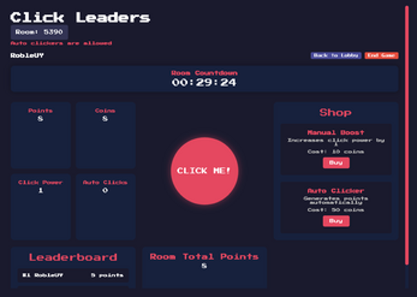 4 Get ready for the most exciting click battle! *Click Leaders* is a multiplayer game where you compete to become the click leader. Create a room that lasts up to *60 minutes* ⏱️ or join a friend's game and fight for *first place* in the rankings. Want more power? Buy *manual boosts* or *auto-click* upgrades to increase your output and become faster. Only one person can be the click leader, and tha…