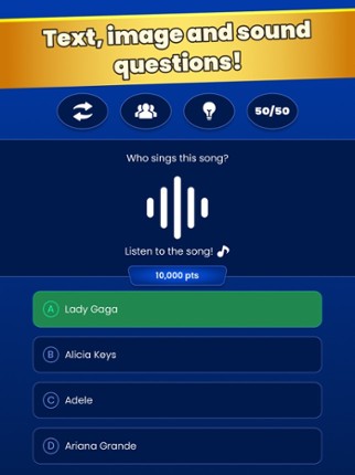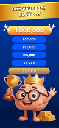 1 87%Game Brain Score87% User Score 2,209 reviewsThe most popular game of general knowledge is now available for iOS. Download the game, have fun, learn and show what you got! HOW TO PLAY: - The player must answer 15 questions correctly - You can use four lifelines - At the end you will win 1 MILLION dollars (virtual) - If you fail you will lose everything or gain the corresponding to the level you are - It has several personal achievemen…