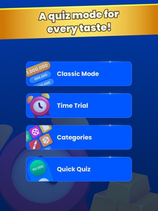 2 54%Game Brain Score54% User Score 14 reviewsMega Quiz is the only game of general knowledge where you start with the top prize: 1 Million! The goal? Simple: Answer to 8 questions of multiple-choice, bet the prize in one or more answers and reach the end with as much money as possible! HOW TO PLAY: • When the match starts you have available 1 million divided into 20 packs of 50 000 to bet throughout the 8 questions of the game • Select yo…