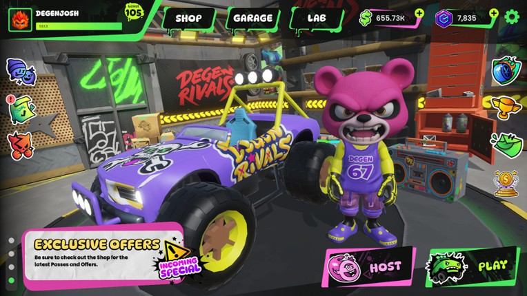 Enter a universe created by the “Dr.”, a mad scientist whose crazy DNA experiments created the ultimate DeGens from a mix of traits extracted from whatever he could get his hands on. His experiment has gone off the rails, and now the DeGens are on a rampage. Battle it out with the DeGens in fast-paced casual matches for domination using blasters, a variety of crazy Power-ups, and your own… If you enjoyed this game, see our list of games similar to DeGen Rivals.