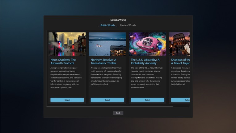 Where Every Story Is Yours to Write Synthasia is a text-based RPG where an AI Game Master reads your world — your character, your inventory, your surroundings, your history — and generates what happens next from all of it. Not scripted choices from a menu. Not a chatbot improvising in the dark. A genuine intelligence that understands the situation and responds to you, specifically. Every decis… If you enjoyed this game, see our list of games similar to SYNTHASIA.