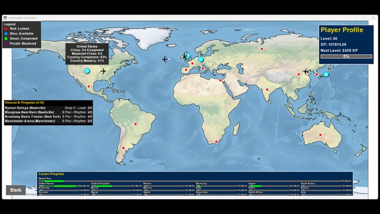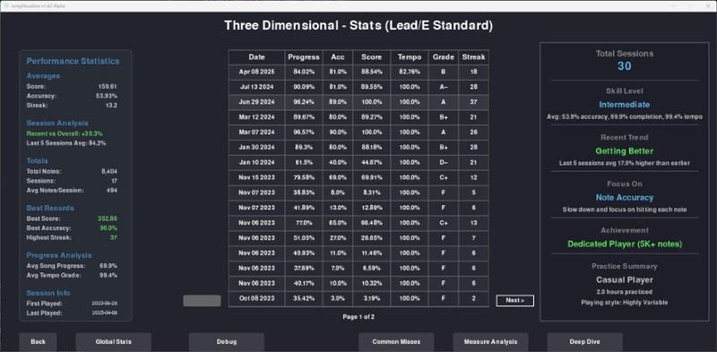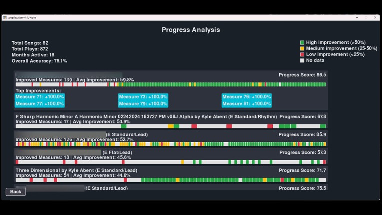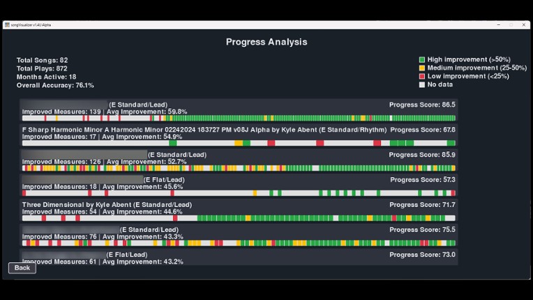 Turn your guitar into a video game controller and master your favorite songs with real-time visual feedback. SongVisualizer is a performance-driven guitar learning application that transforms practice into an engaging, gamified experience. Simply plug in your guitar using any standard USB interface or cable, load your Guitar Pro 5 files, and watch as your playing comes to life on the note highway… If you enjoyed this game, see our list of games similar to SongVisualizer™.