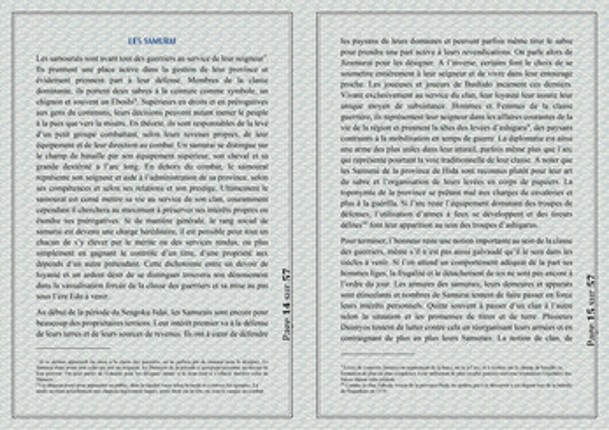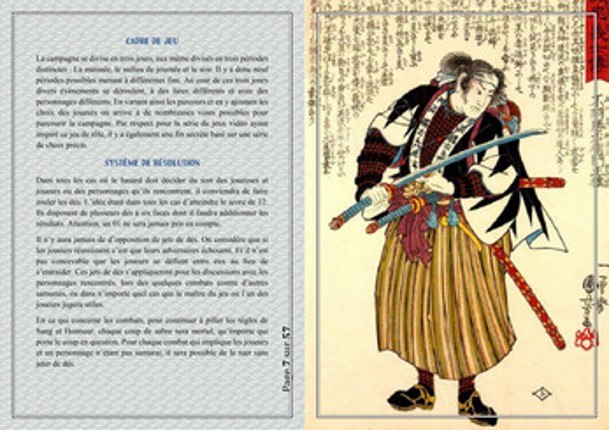 6 Dernière Maj : 25/03/2023 Work in progress Robin « Mestre » Effulgens CC BY NC (Toutes les illustrations utilisées sont listées plus bas) Soyez toutes et tous les bienvenues sur la page itchio du jeu de rôle : Bushido ! Vous trouverez ici tous ce qu’il vous faut pour découvrir le jeu avant d’en télécharger ses fichiers. Plus bas se trouvent plusieurs chapitres présentant le jeu sous tous ses aspe…