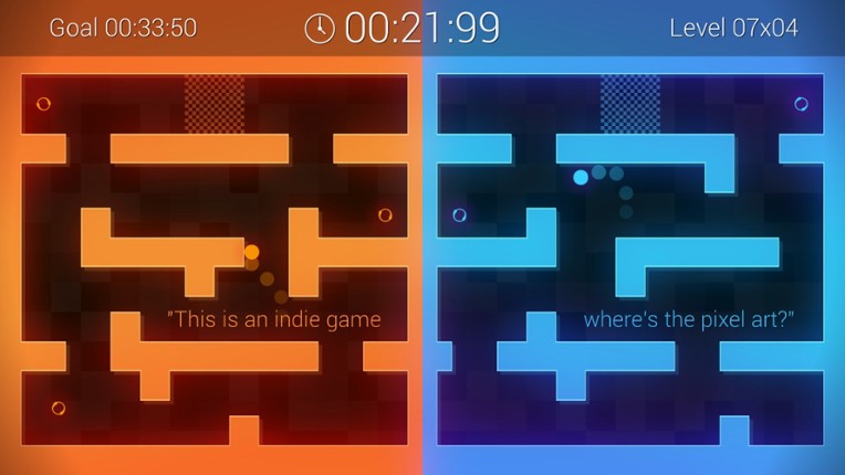 Test your reflexes and awareness as you simultaneously guide two lovable balls through 101 brightly coloured challenges in the world's first concentration platformer. Control both at exactly the same time using the same set of controls and watch out for hazards. Oh, and there are jokes! If you enjoyed this game, see our list of games similar to Binaries.