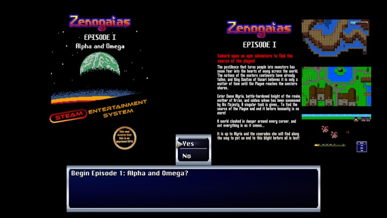 9 Four eras. One destiny.Zenogaias is a sweeping, turn-based JRPG that spans the ages from 8-bit Fantasy to HD Sci-Fi/Fantasy fusion across four full-length Episodes, each inspired by a different era of gaming's greatest JRPGs. Linked together by a powerful, epic narrative, each Episode evolves in tone, visuals, mechanics, and music to reflect the growth of the genre itself while exploring themes o…