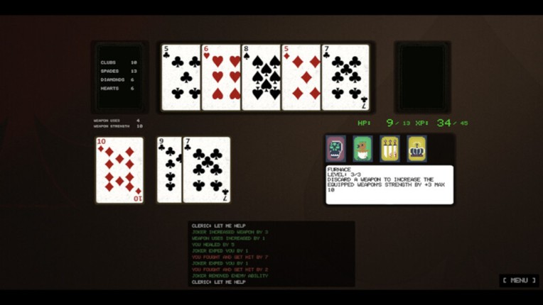 Scoundrel is a dungeon-crawler roguelike based on poker cards. Your goal is to clear all the rooms in a dungeon without losing all your health. At the beginning of the game, you enter a room in a dungeon. Each room contains four random poker cards in its field. In each room, you will have two options: run or clear the room. When you run, all cards in the current room are placed at the bottom … If you enjoyed this game, see our list of games similar to Scoundrel beta 0.1.