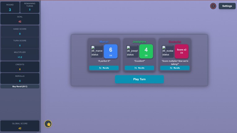 Welcome to DICE ROGUES, the high-stakes, infinitely progressing roguelike where survival depends on the physics of a roll. In this neon-soaked battle against the House, simple numbers are never enough. You must build a hand of sentient dice, each possessing unique personalities and game-breaking "Rogue" effects. Each round, the house rolls a score to beat, this score increases but you… If you enjoyed this game, see our list of games similar to Dice Rogues.