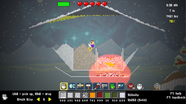 Atomcraft is a game where you can pick up and place every pixel of the environment. Pixels react to whatever is around them, and you can build vessels and machines to make reactions happen. Upgrade your drill and your tools to dig deeper and deeper into the planet in search of better materials!Smelt ore and perform chemical reactions!Find mysterious artifacts with your artifact scannerBattle stra… If you enjoyed this game, see our list of games similar to Atomcraft.