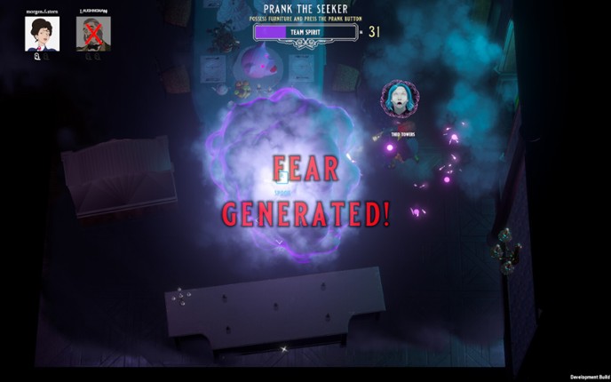 3 Hyde's Haunt & Seek is a spooky party game where you hunt ghosts...who happen to be your friends! Play as the mortal Seeker to fend off their poltergeist pranks, or team up as Ghosts to launch silly jump scares. It’s family-friendly multiplayer mayhem, all in the “spirit” of fun! An asymmetrical hide-and-seek-like, one mortal Seeker (first person POV) takes on a team of up to 3 ghosts (top…
