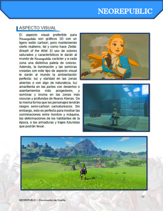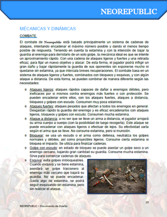 1 A game design document about a new original game Neorepublic. It explains with some detail the characters, HUD, setting, story, enemies, level design and more. This document is an example of a GDD, therefore is not complete. It function is similar to the one of a vertical slide, but for this type of documentation.This document is only meant to be a representation of abilities. The software used: M…