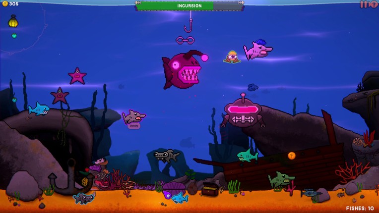 By Bait or By Bullet is a bombastic 2D fishing rogue-lite adventure with both story-rich top-down exploration and action-packed platforming combat, made with Unity and available on Windows and through WebGL! The Rock Beyond Reality - Converse with the curious collection of characters who have been dragged beyond reality as you gear up for your next tentacular tussle. These odd bedfellows have … If you enjoyed this game, see our list of games similar to By Bait or By Bullet.