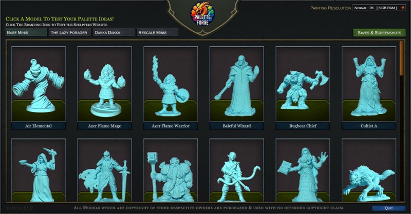Palette Forge was designed to test and perfect your color palette ideas before picking up a real brush and miniature to bring your ideas to life! Palette Forge is not a “Miniature Painting Simulator”. But it’s fully capable of being a fun and relaxing way to paint miniatures digitally. The main feature is the advanced palette system that not only gives you a reference of colors you chose for yo… If you enjoyed this game, see our list of games similar to Palette Forge.