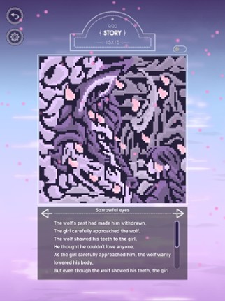 Once upon a time, beyond a valley there lived a wolf who was considered to be a monster. For a long time he lived, biding his time, all alone. One day a girl who lived in a village under the wolf’s mountain went up into the mountain to collect herbs. She went deep in the woods and by chance she encountered the wolf. What’s the story spun between the wolf, who was seen as a monster, and the girl?… If you enjoyed this game, see our list of games similar to Moonlight - nonogram.