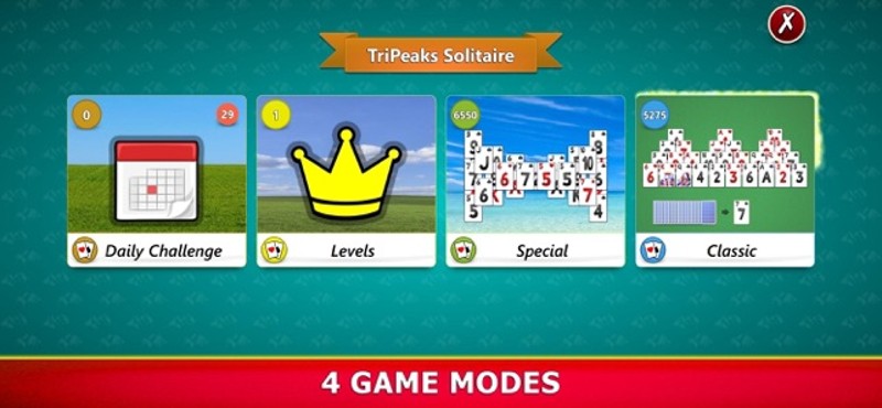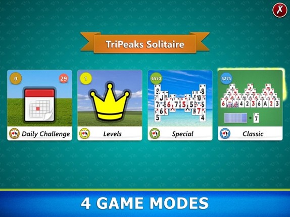 TriPeaks Solitaire card game with 4 Game Modes. If you enjoyed this game, see our list of games similar to TriPeaks Solitaire Mobile.
