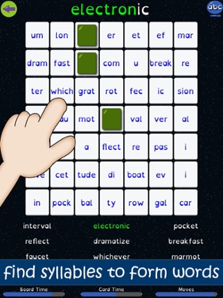 *** 2015 Academics´ Choice Award - Smart Media Winner *** Join Spike in this new space adventure in which he must travel through 27 missions in order to reach his destiny. Each mission will require the use of special skills to find and complete all the words found in deep space. In each mission you will have to find and join syllables to complete all the words and finish the task. But beware new… If you enjoyed this game, see our list of games similar to Syllable Word Search - School.