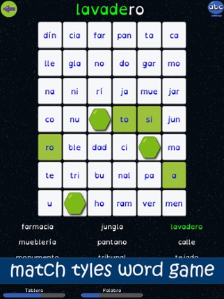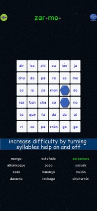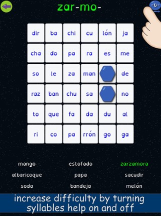 *** Spanish Version of "Syllable Word Search" 2015 Academics´ Choice Award - Smart Media Winner *** Join Spike in this new space adventure in which he must travel through 27 missions in order to reach his destiny. Each mission will require the use of special skills to find and complete all the words found in deep space. In each mission you will have to find and join syllables to complete all the… If you enjoyed this game, see our list of games similar to Sopa de Sílabas.