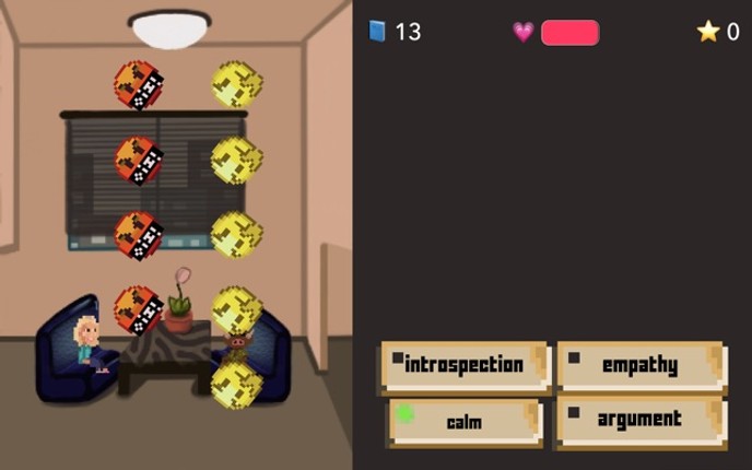 A short RPG about the daily life of a psychologist. Touch negative thoughts with the appropriate answer to get experience. If you level up enough, you may reach the supermarket in time and get back home in time for your birthday party! The game is a bit of a whack-a-mole, but instead of moles, you need to tap emoji that represent the negative thoughts of a patient. You need to select the correct … If you enjoyed this game, see our list of games similar to The Therapy RPG.