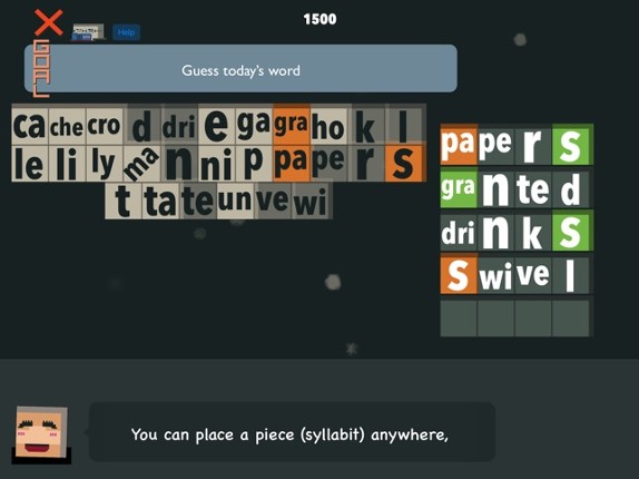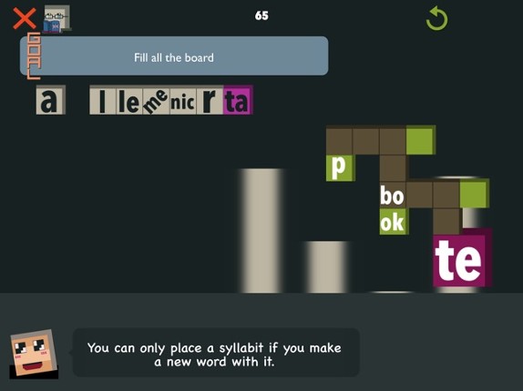 New type of word puzzle game. Learn vocabulary while having fun! Connect blocks that contain pairs or triplets of letters, to fill a board of an arbitrary shape. The board is a pixel-art drawing that points to hints of the types of words that you may make. The main rule is that you always have to connect a piece to an existing one by making a new word. For instance, if you have the piece "ble" on… If you enjoyed this game, see our list of games similar to Syllabits.