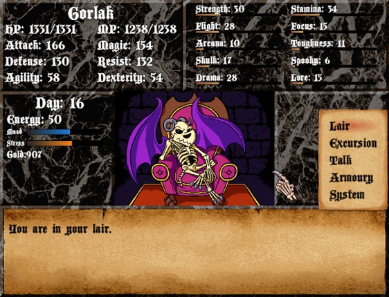 The Unlife Of Gorlak is an rpg inspired by Princess maker, Tokemeki Memorial, and TTRPGS. You play as Gorlak, a recently revived villainous dragon adjusting to his new unlife. Explore areas by spending a limited amount of energy per day to take your chance on various kinds of encounters. as you explore and train your non combat skills you build up your combat stats and gain special abilities. Thi… If you enjoyed this game, see our list of games similar to The Unlife Of Gorlak.