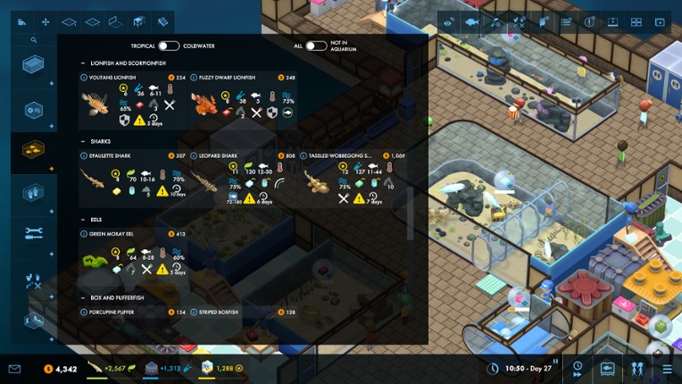 A theme park management game with an aquatic twist. Design your displays, look after your fish, manage your staff and keep your guests happy! It's all in a day's work as the curator of your very own Megaquarium. If you enjoyed this game, see our list of games similar to Megaquarium.